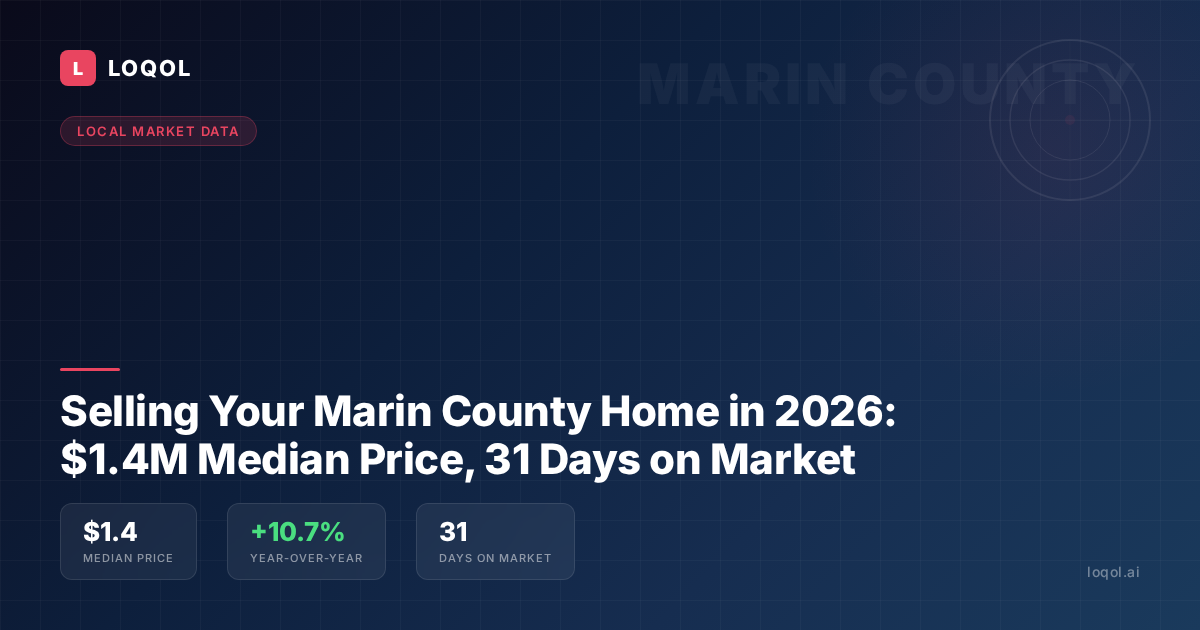 Marin County homes are selling for a median price of approximately $1.4 million as of early 2026, with the median days on market sitting at 31 days according to Redfin. That's a strong seller's market — but it also means a traditional 5% agent commission could cost you $70,000 or more on a single transaction. Here's everything you need to know about selling in Marin County right now, with real data and a smarter way to keep more of your equity.